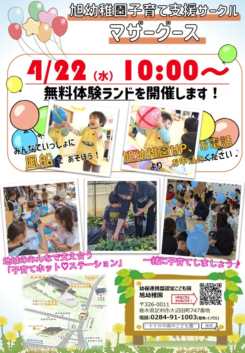 旭幼稚園は両毛地区で最初の育児支援サークルを開催し、長い歴史と厳選された活動内容が特徴です。